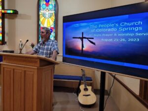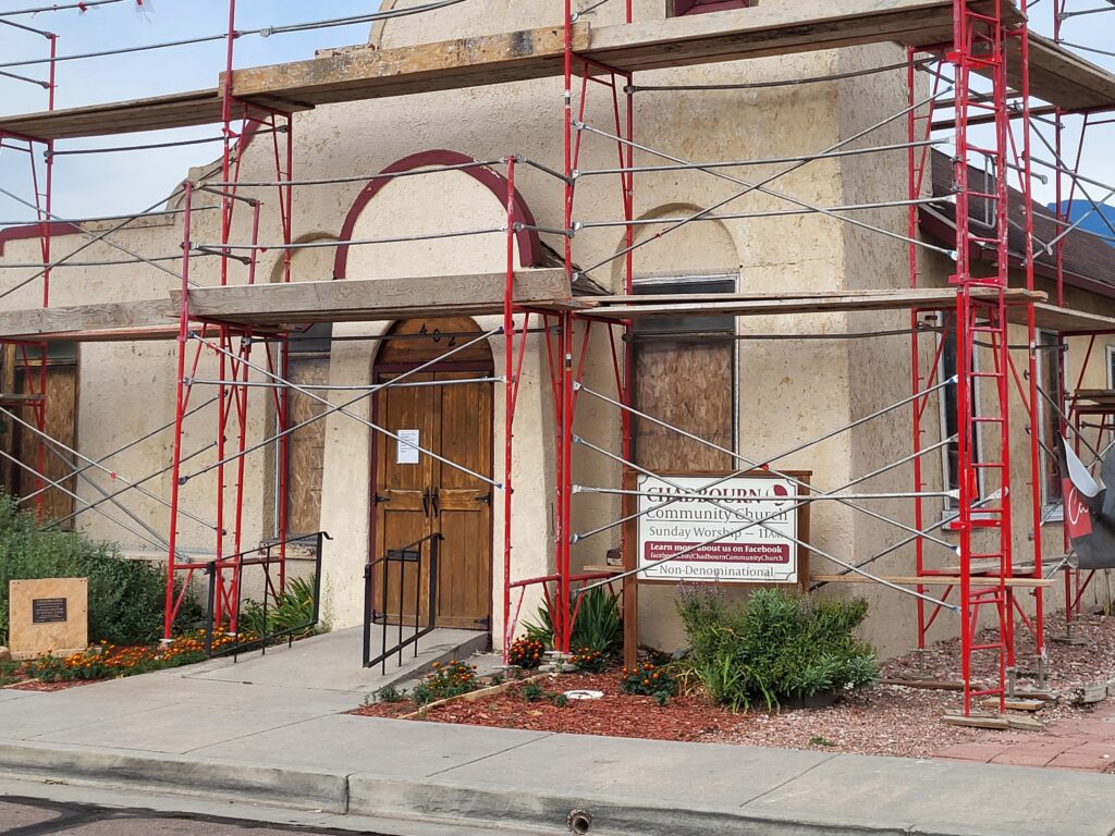 Due to the generous gift of a private foundation, historic Chabourn Chapel is undergoing an extensive renovation from the inside out. Some of the work includes two ADA bathrooms, an expanded kitchen, renovated stained glass windows, new stucco on the outside, and new flooring. In the meantime, the People’s Church of Colorado Springs, which meets in Chadbourn Chapel, continues to carry on its mission to the homeless community of Colorado Springs by providing a safe and welcoming place to worship and feeding the homeless every Sabbath (Saturday) at 3 pm and during the week.