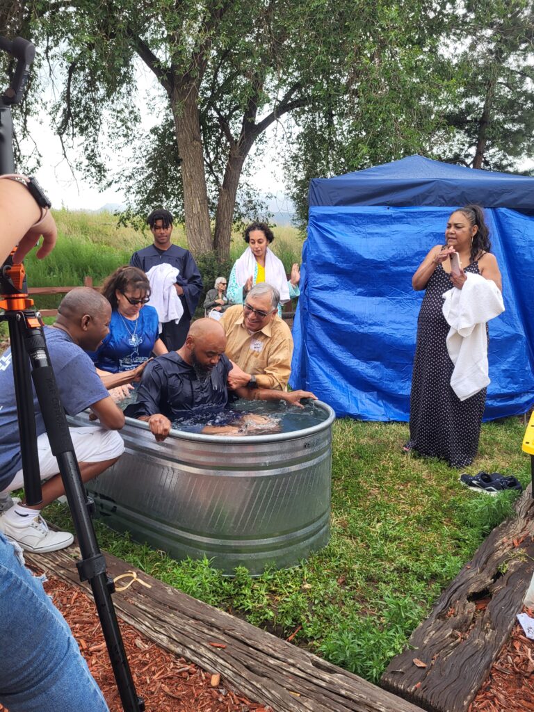 Recently Michele’s son, Justin, was released from prison after serving 17 years. While in prison, he turned his life around and gave his life to Christ. The first thing he wanted to do when he got out was to come to church and be baptized. On February 21st, with a monitor on his ankle, Justin publicly declared his faith in Jesus Christ as his Lord and Savior and was baptized, while family members held up his leg with the monitor. The mission of the People’s Church is to reach out to the “least of theses.” Please join us.